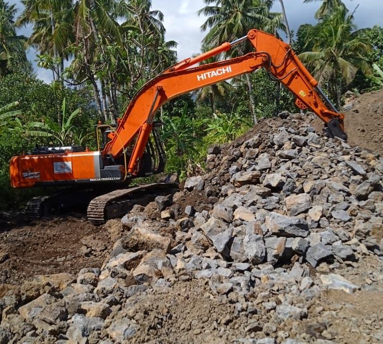 Nos engins (pelle HITACHI 37T, BRH HAMMER FX2800, camions et compacteurs) permettent une exécution rapide, sécurisée et précise, y compris en zones difficiles d’accès.